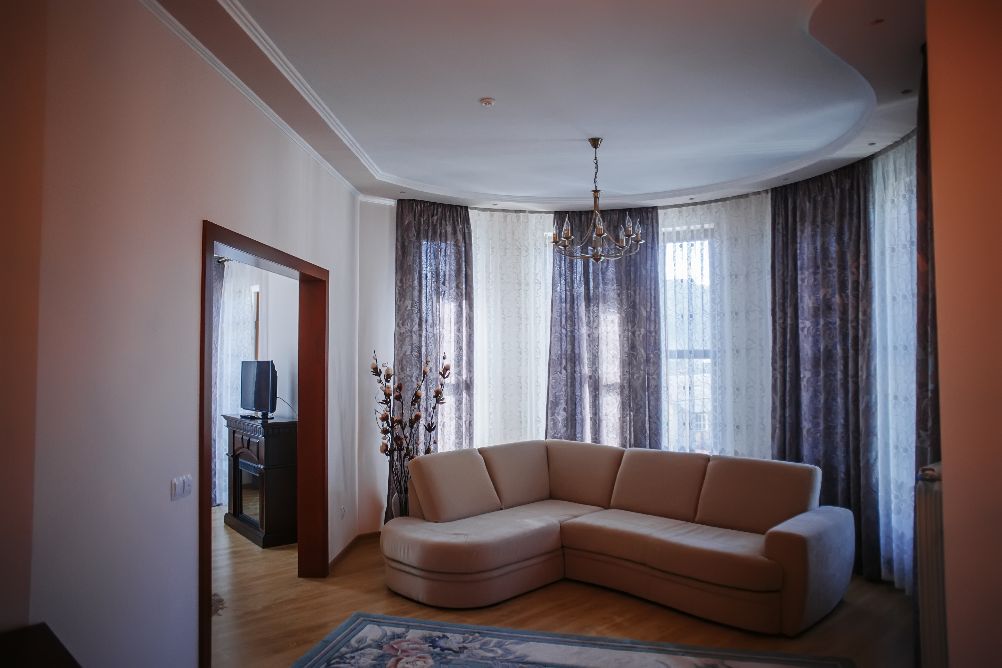 Просторий люкс із вітальнею та спальнею — ідеальний вибір для комфортного відпочинку. Спальня відокремлена аркою (без дверей).