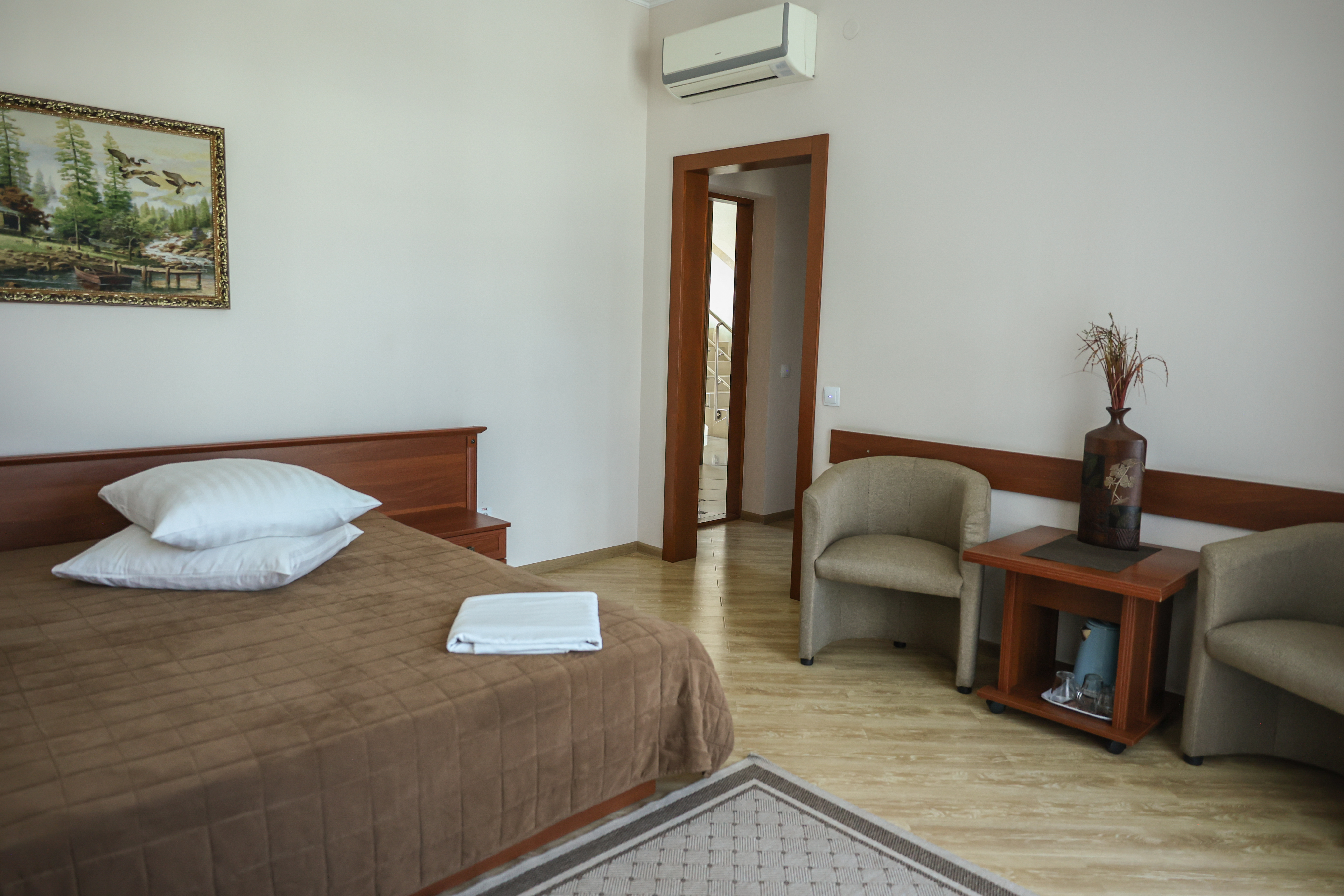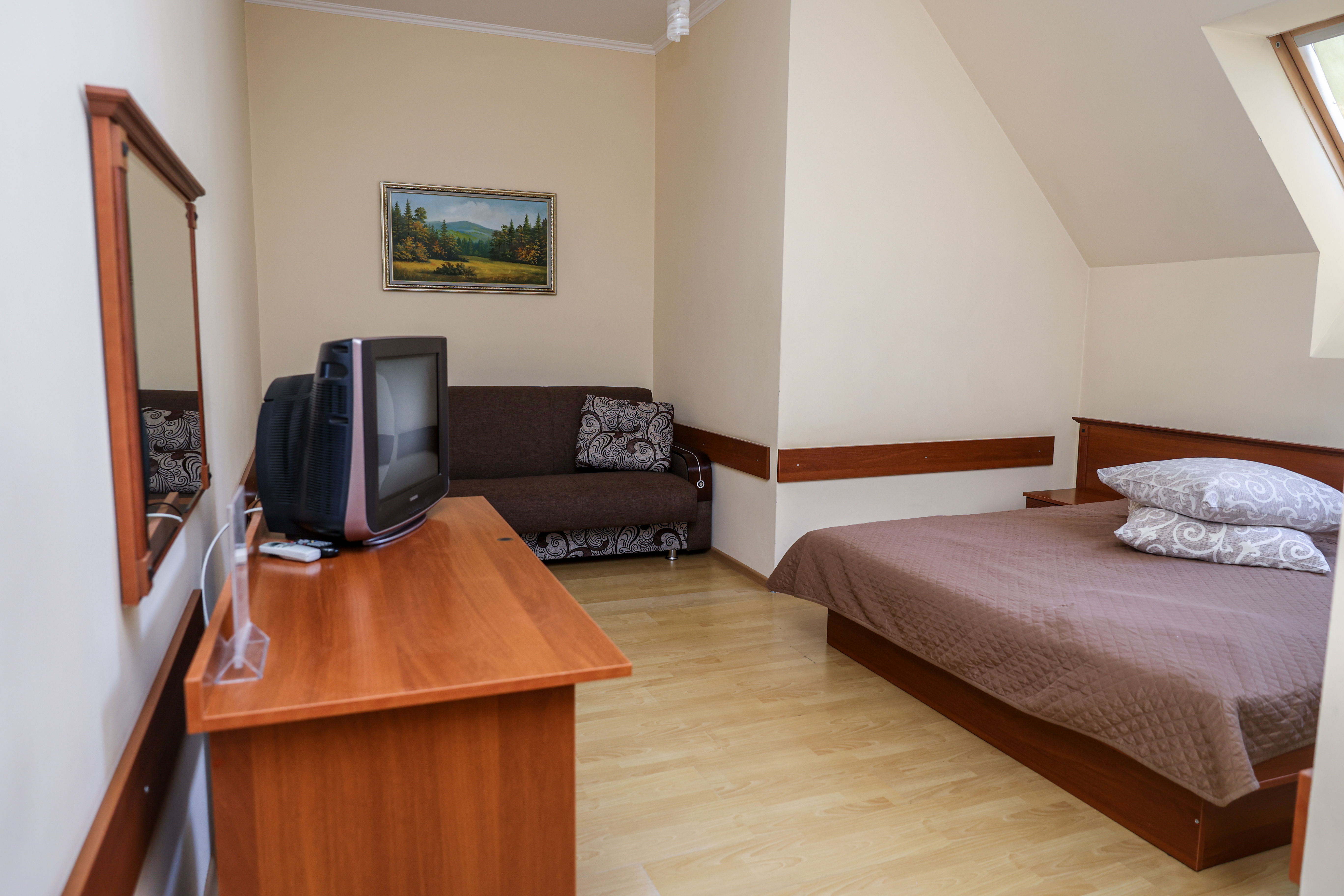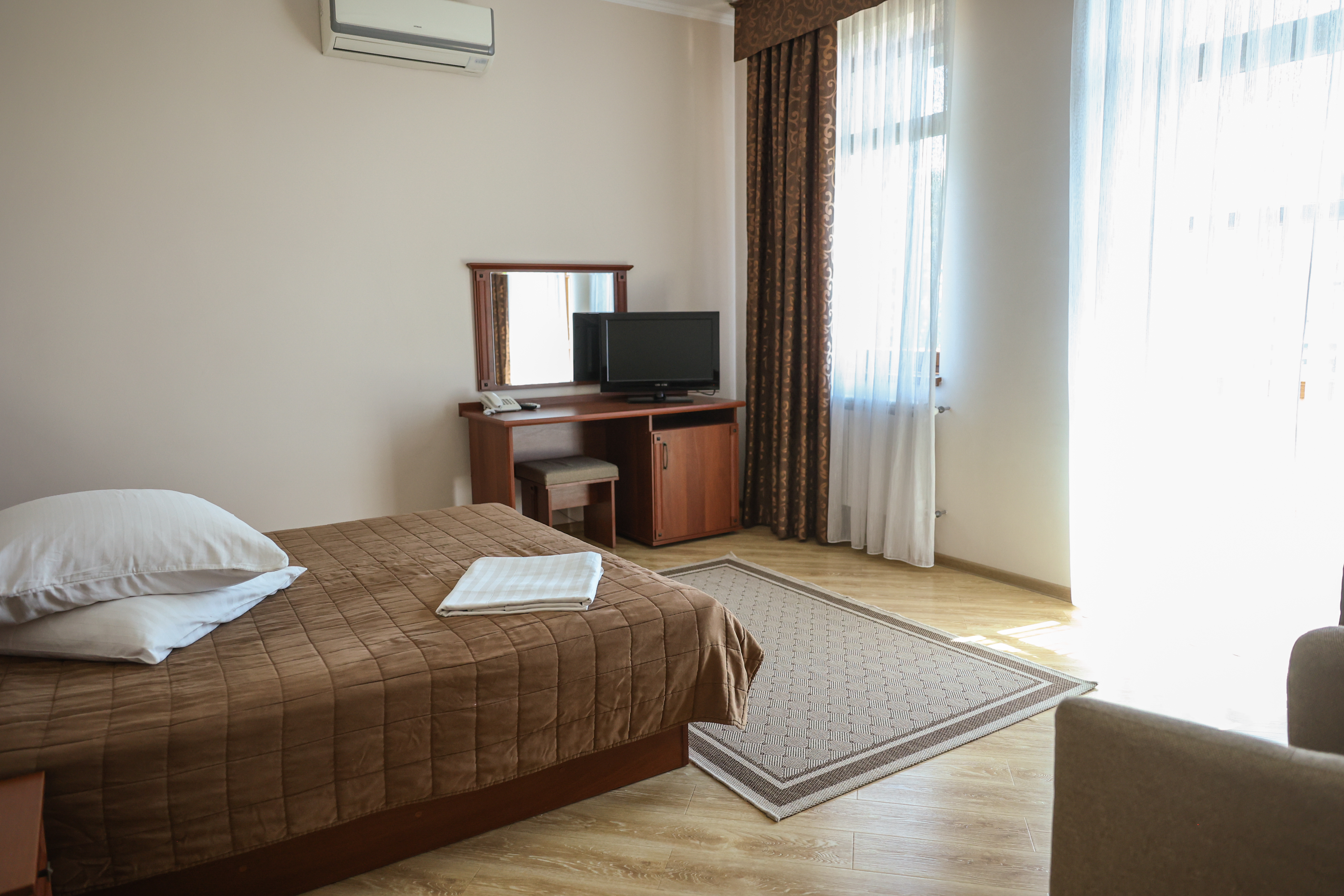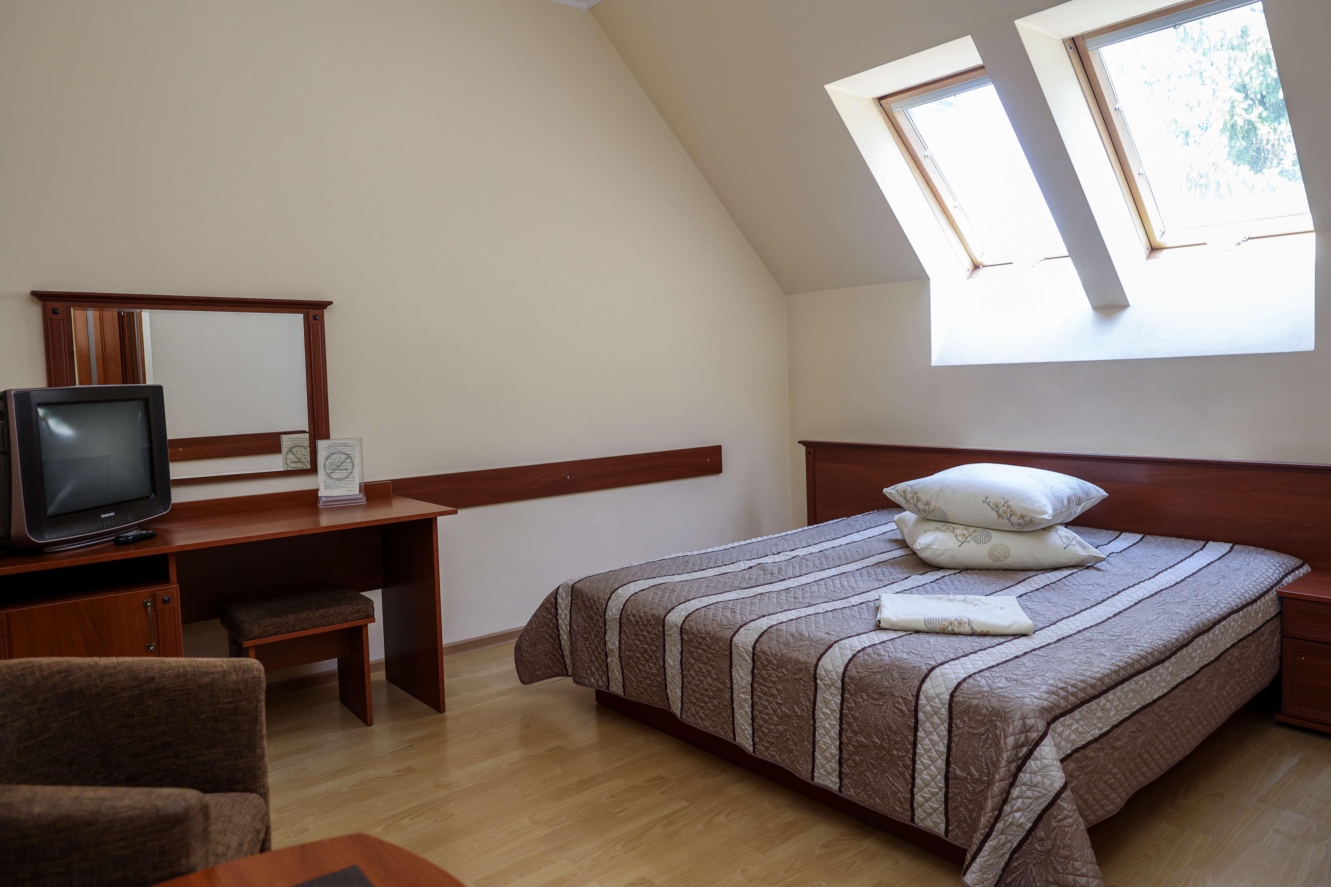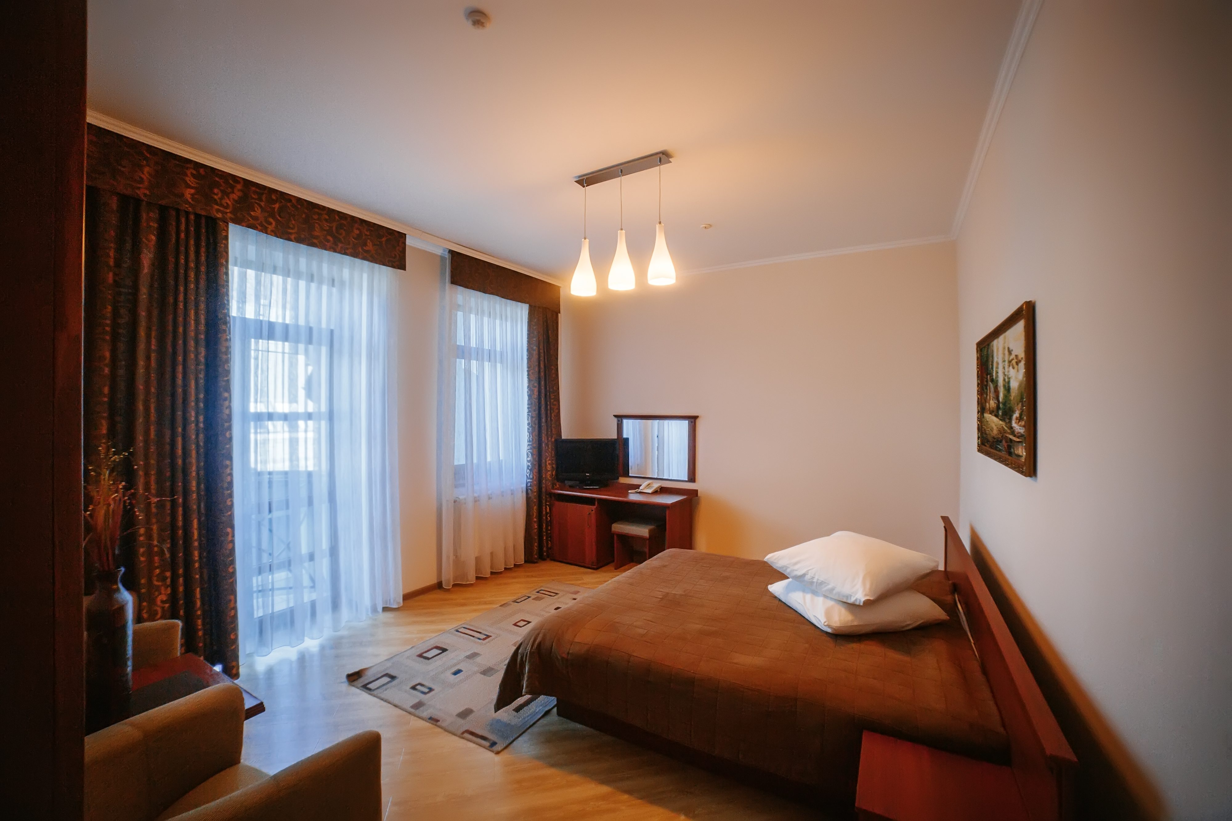 Комфортабельний двомісний номер із сучасним дизайном. У більшості номерів є французький балкон.