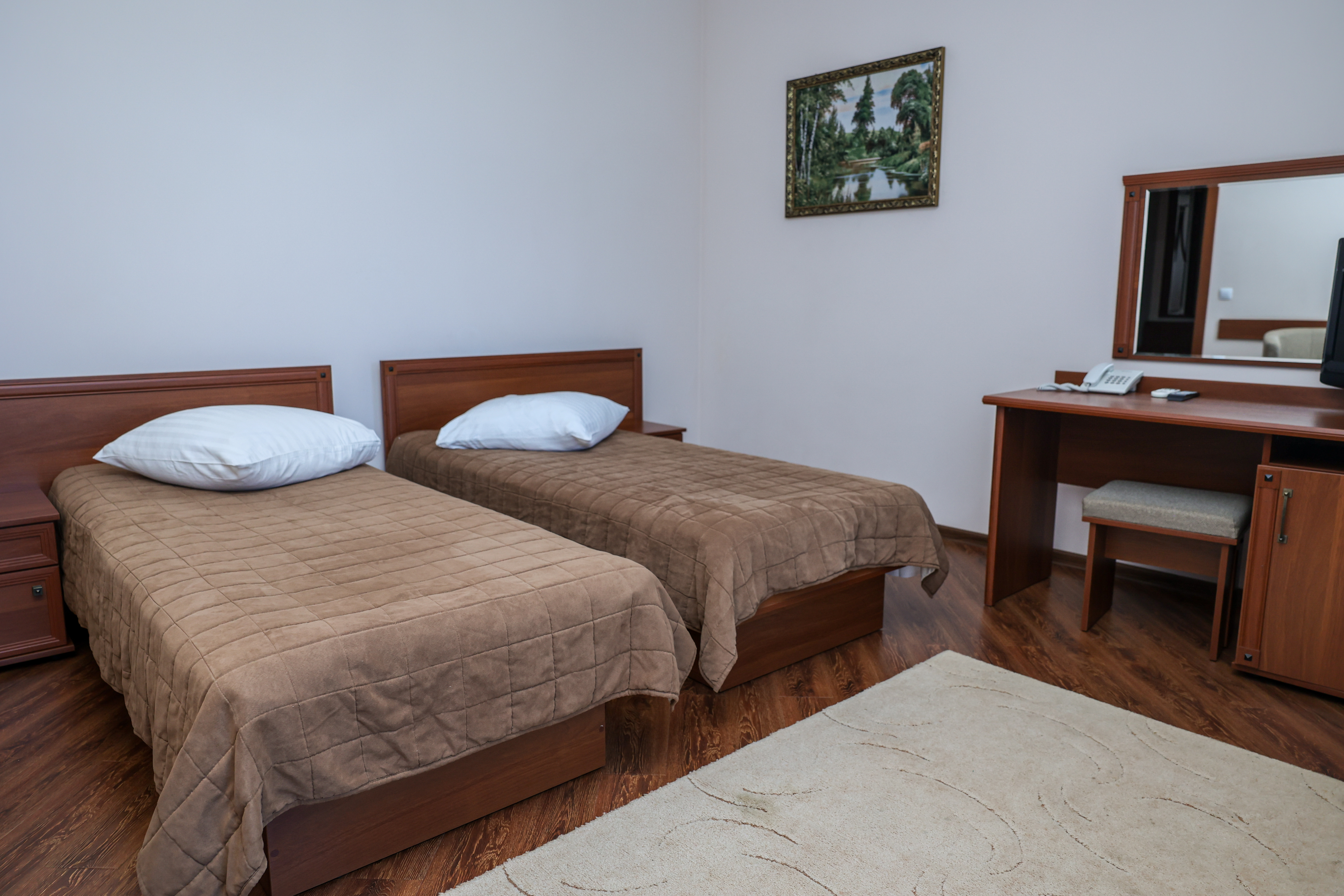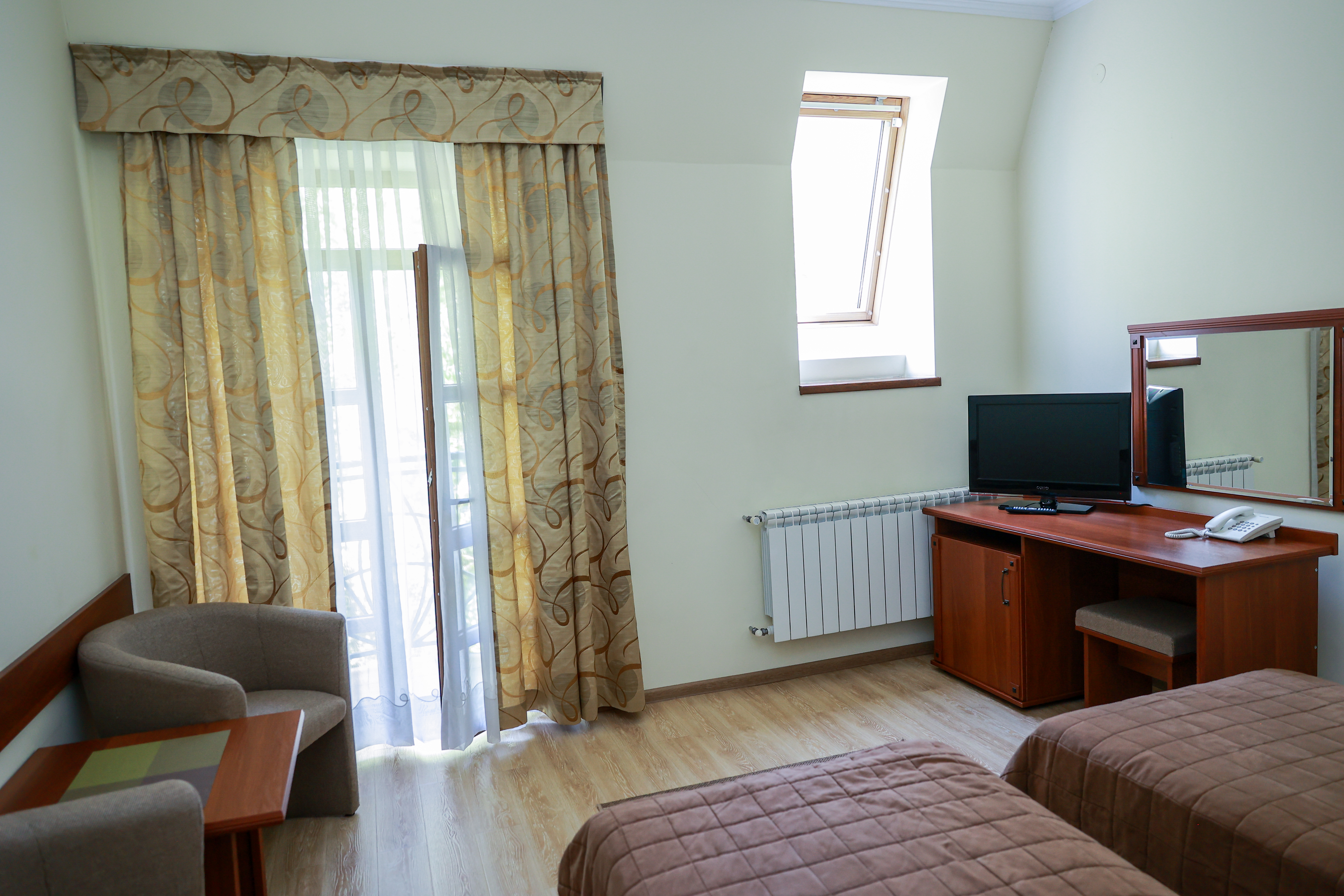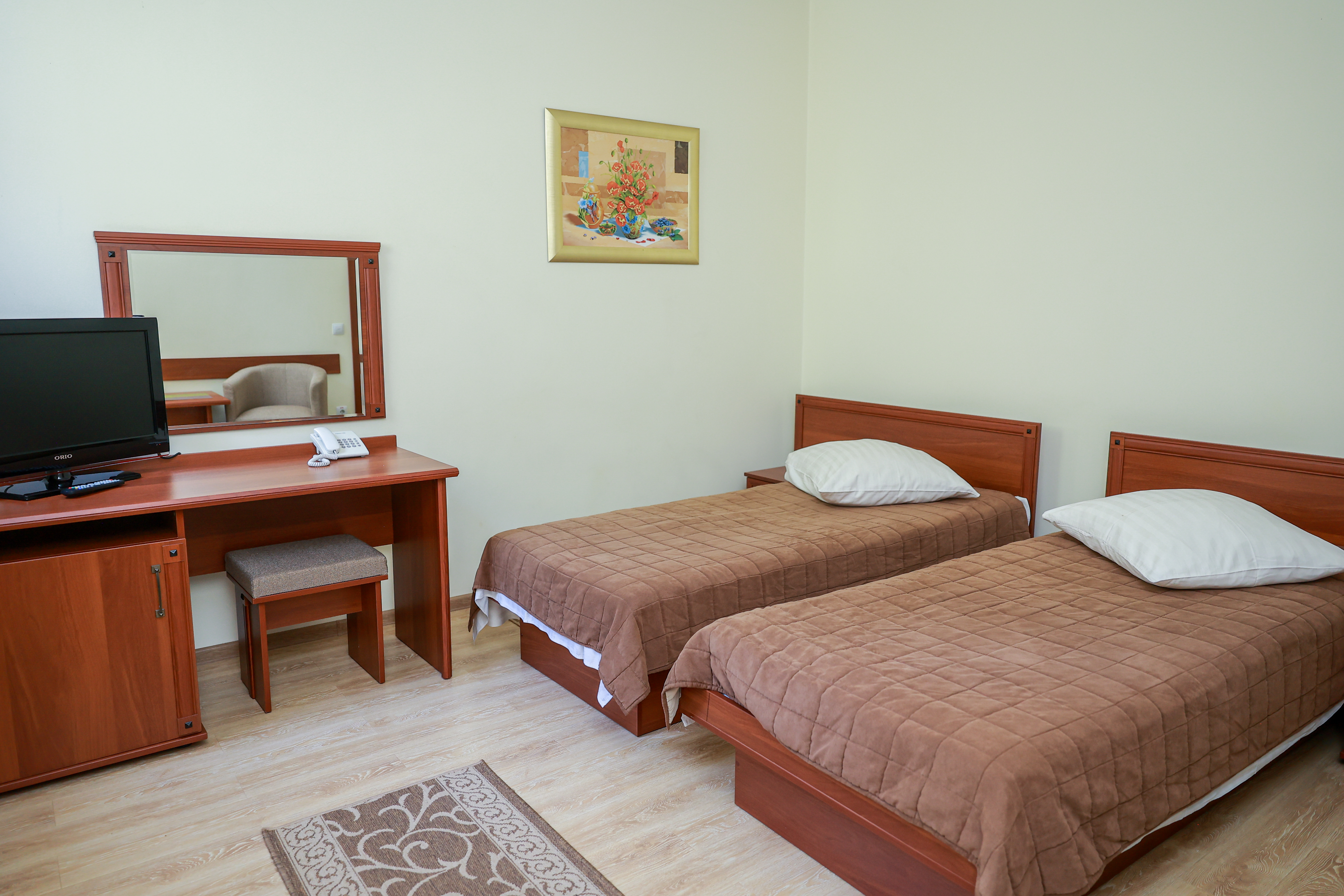 Затишний номер для двох гостей із можливістю відпочинку на окремих ліжках. У більшості номерів є французький балкон.