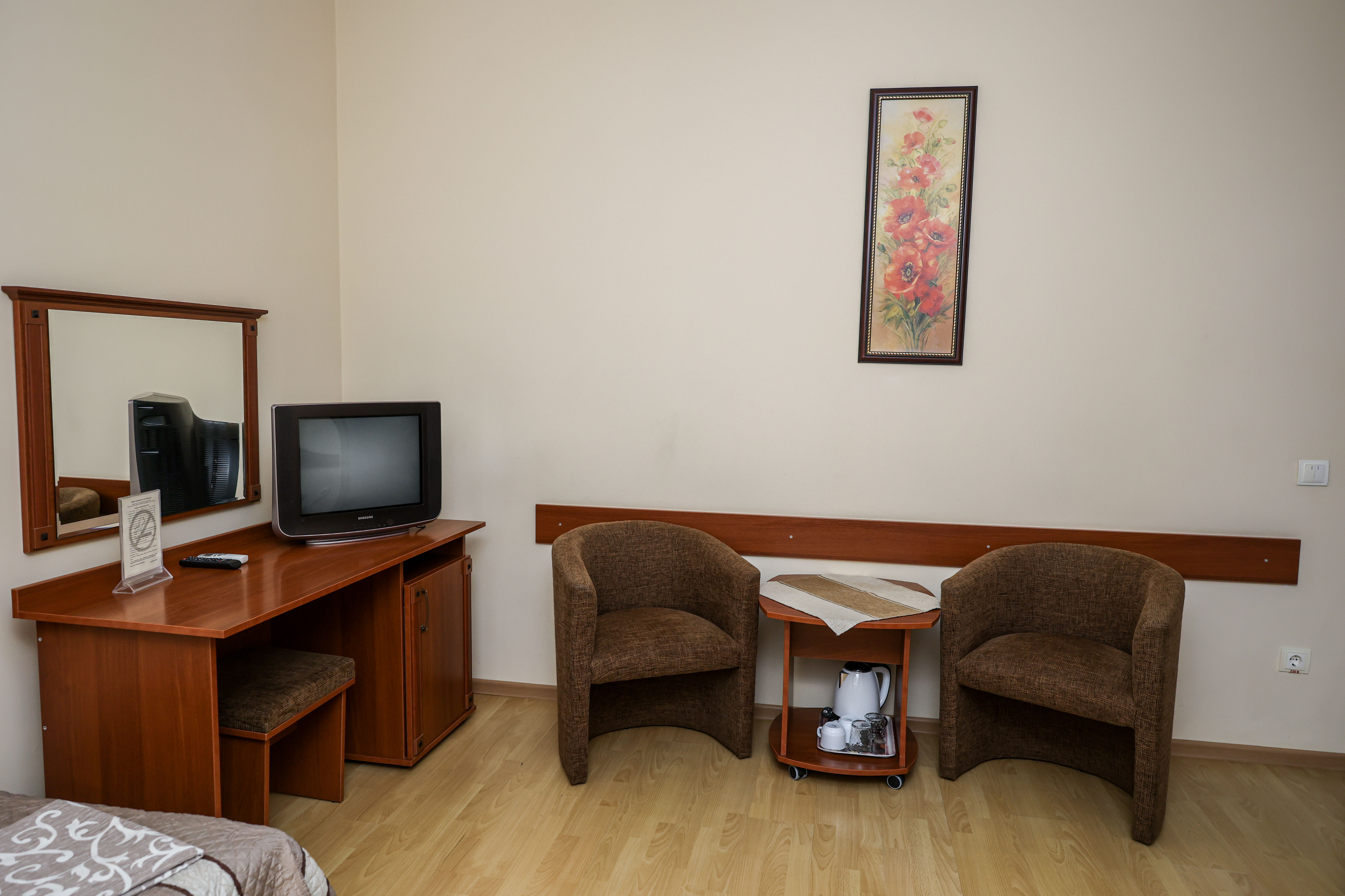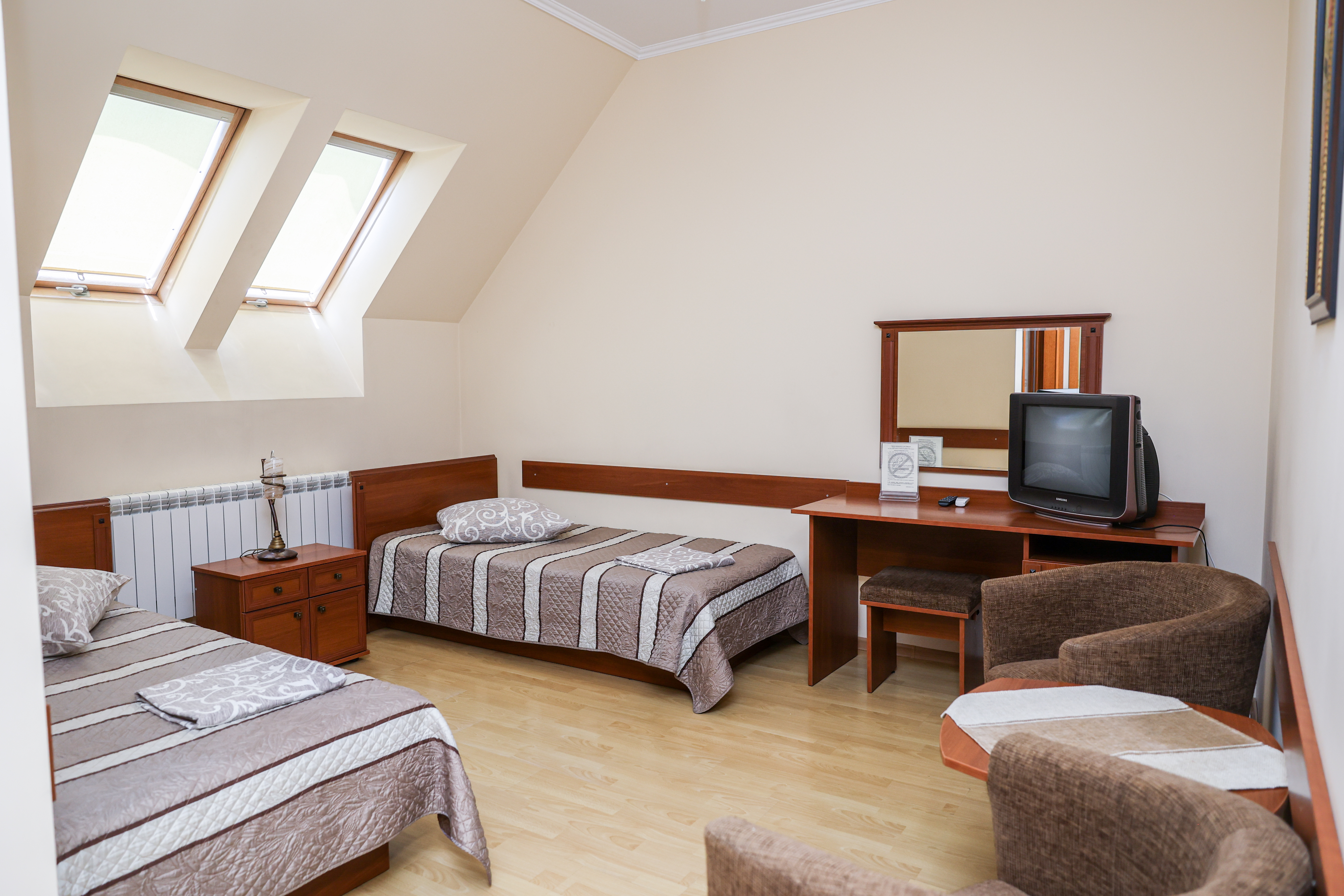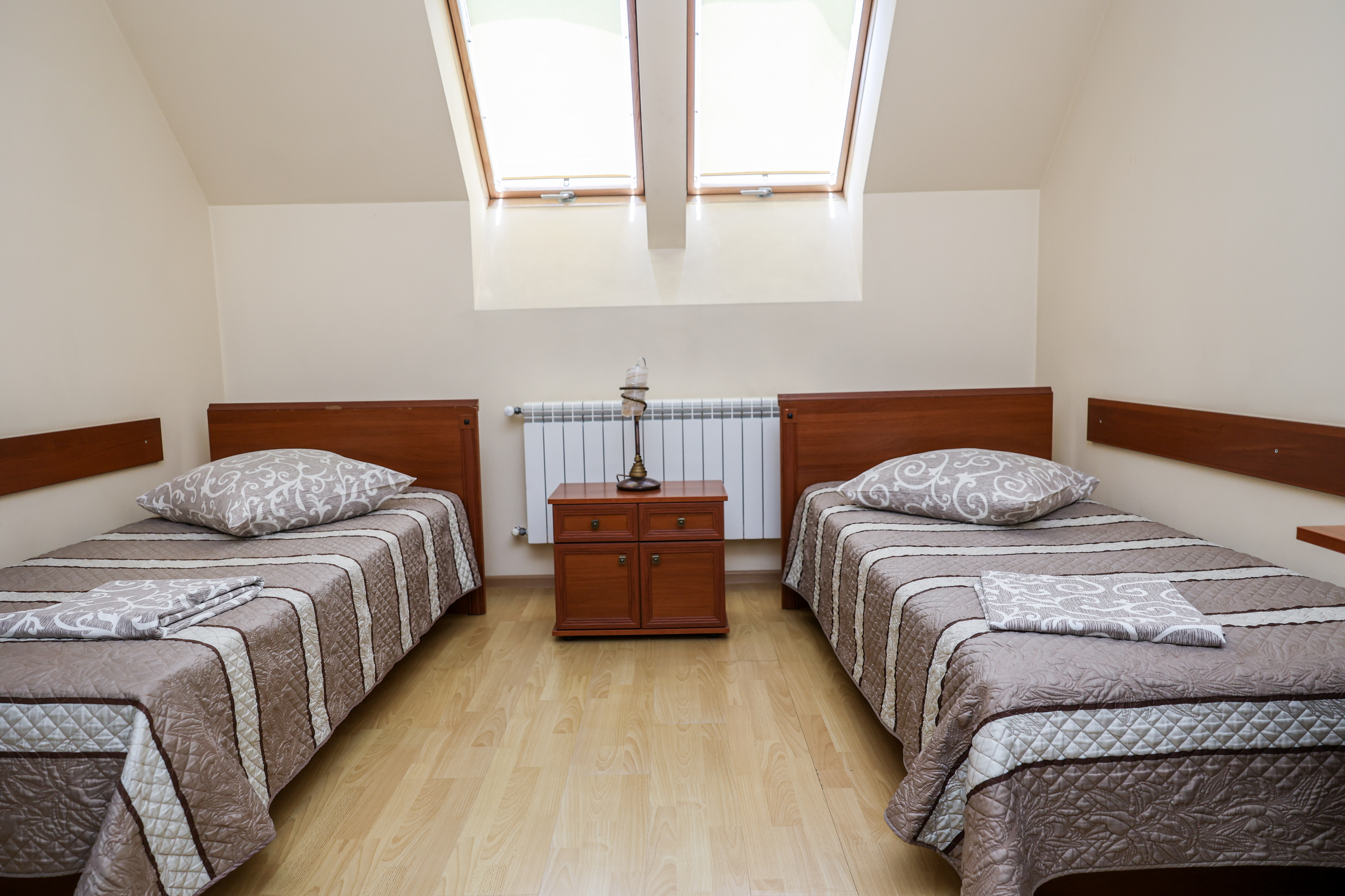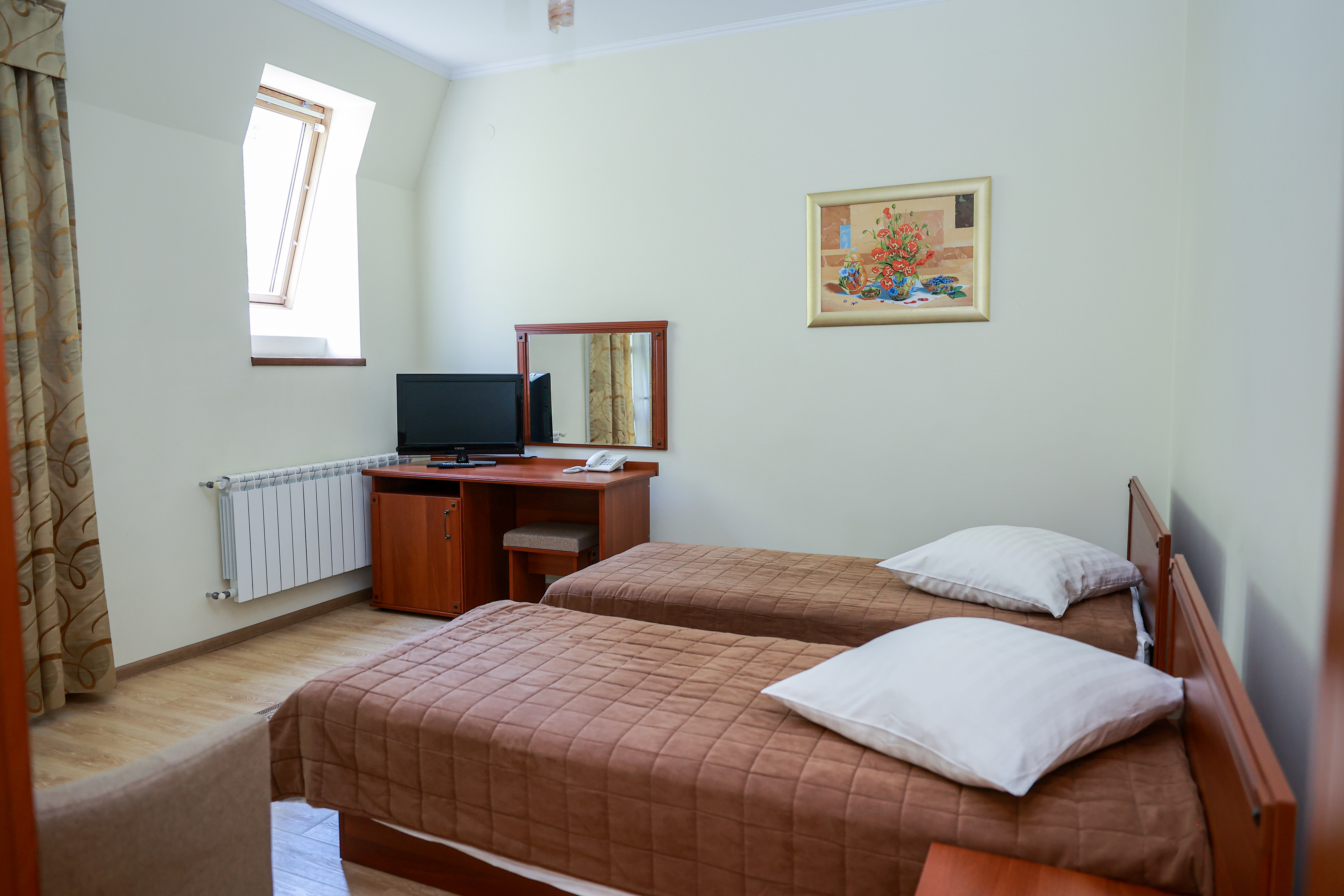 Затишний номер для двох гостей із можливістю відпочинку на окремих ліжках. У більшості номерів є французький балкон.