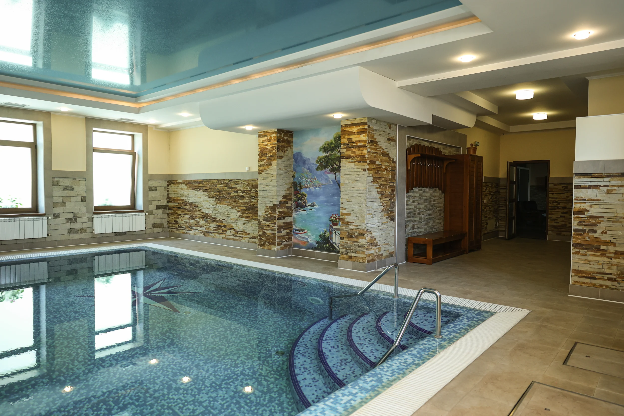 - Затишний СПА-простір із фінською сауною, басейном (7×4×1,6 м), кімнатою відпочинку, роздягальнею та душовою.